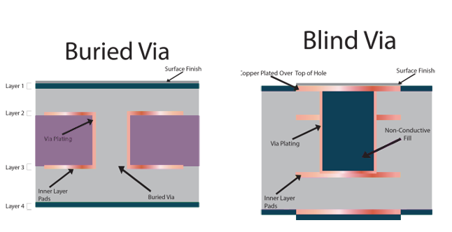 When PCB space is limited, or you're working with tight plated through hole constraints, Blind and Buried Vias may be the answer. Blind & Buried Via technology has played a pivotal role in squeezing more capability into a smaller space. By shortening vias to only pass through necessary layers, more surface area become available for components.